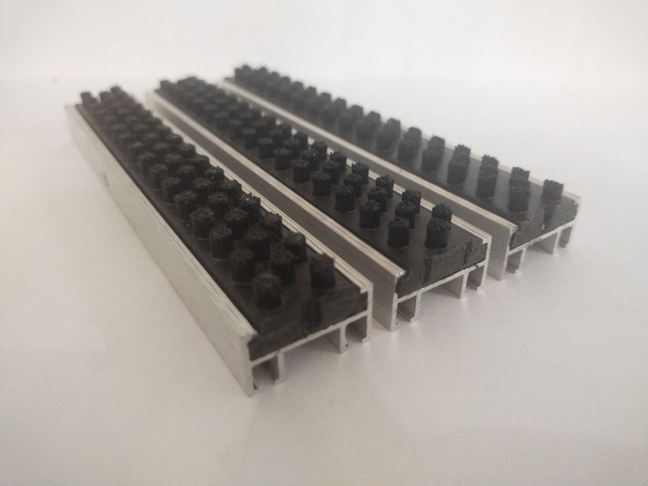 Главная Каталог товаров Грязезащитная алюминиевая решетка "ЕuroLux" Высота изделия 18 Грязезащитная алюминиевая решетка" ЕuroLux-ECO Light" без шумоизоляции, вставка "Щётка+Щётка" высота изделия 18 мм, толщина профиля 1,0 мм