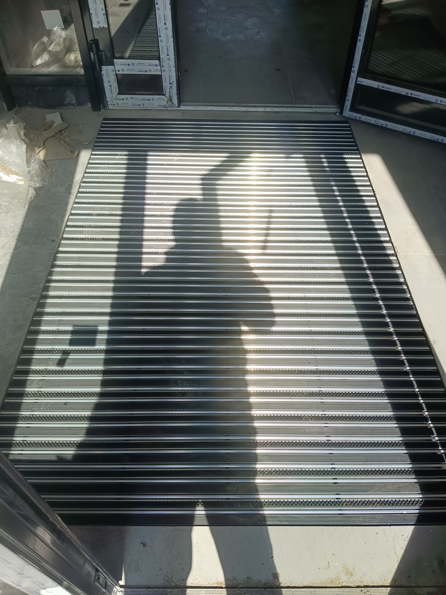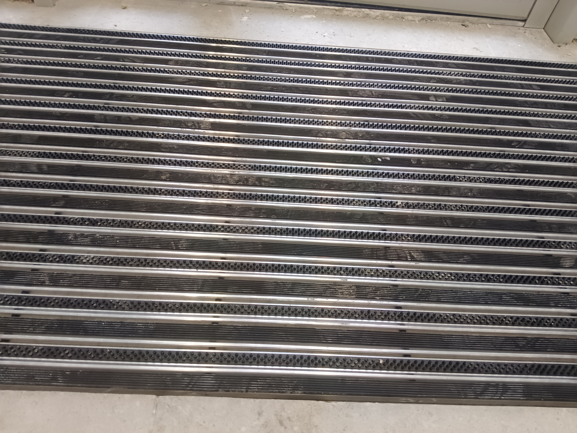 Главная Каталог товаров Грязезащитная алюминиевая решетка "ЕuroLux" от завода изготовителя Высота изделия 20 мм Грязезащитная алюминиевая решетка" ЕuroLux-ECO" с шумоизоляцией, вставка "Резина+Скребок+Щетка" высота изделия 20 мм, толщина профиля 1,0 мм