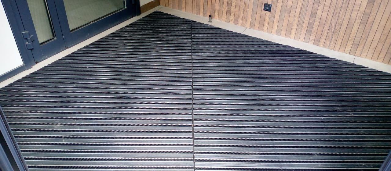 Главная Каталог товаров Грязезащитная алюминиевая решетка "ЕuroLux" от завода изготовителя Высота изделия 23 мм (усиленный) с шумоизоляцией Грязезащитная алюминиевая решетка" ЕuroLux-MAXI, вставка "Резина+Щётка", профиль усиленный с шумоизоляцией . Высота изделия 23 мм, толщина профиля 2,1 мм