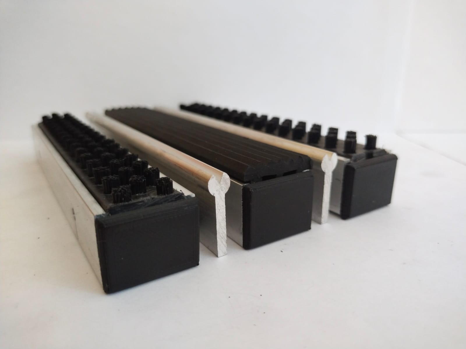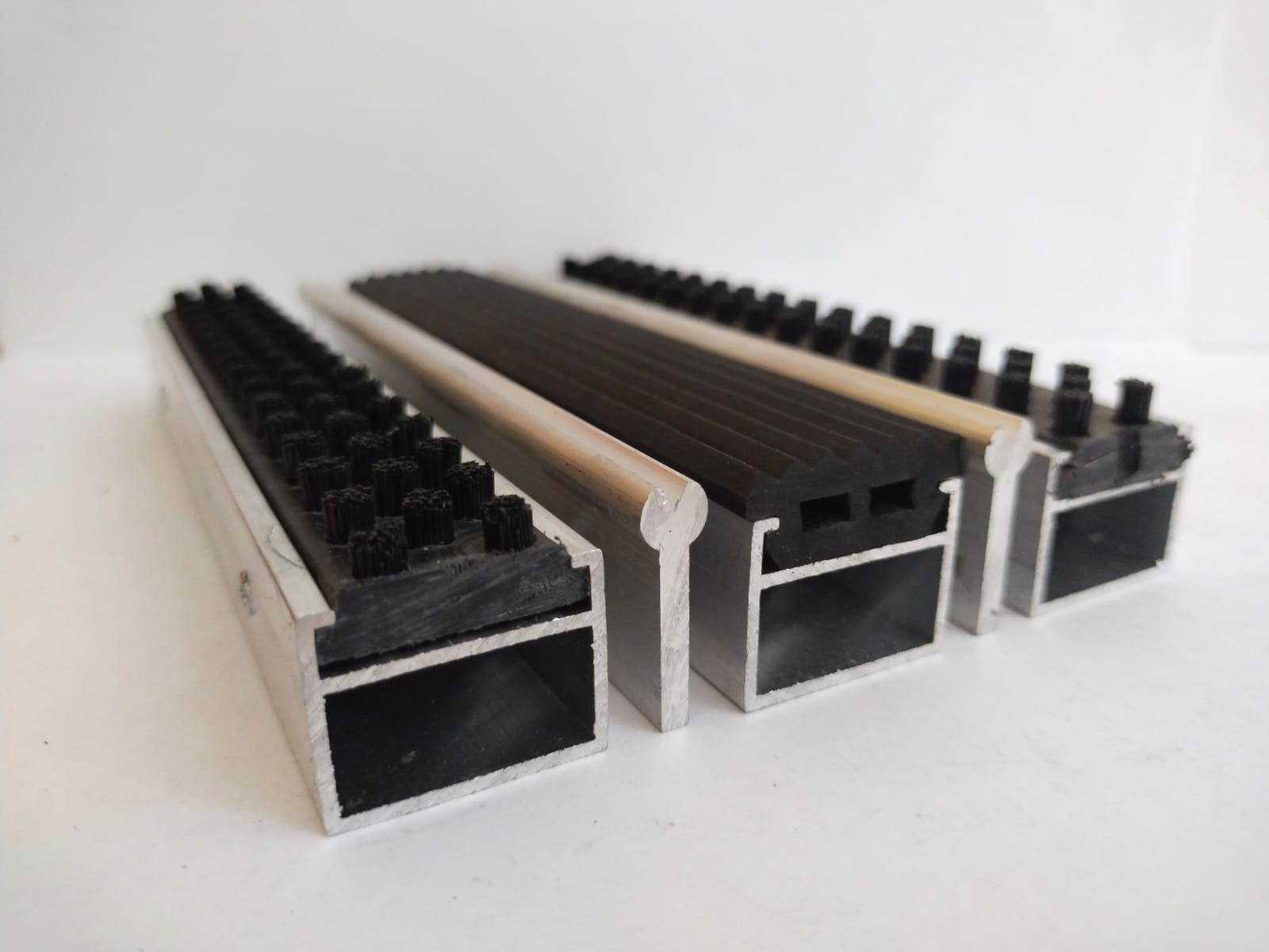 Грязезащитная алюминиевая решетка" ЕuroLux-SG ", вставка " Резина+Скребок+Щётка", Высота изделия 28 мм с шумоизоляцией, толщина профиля 1,3 мм