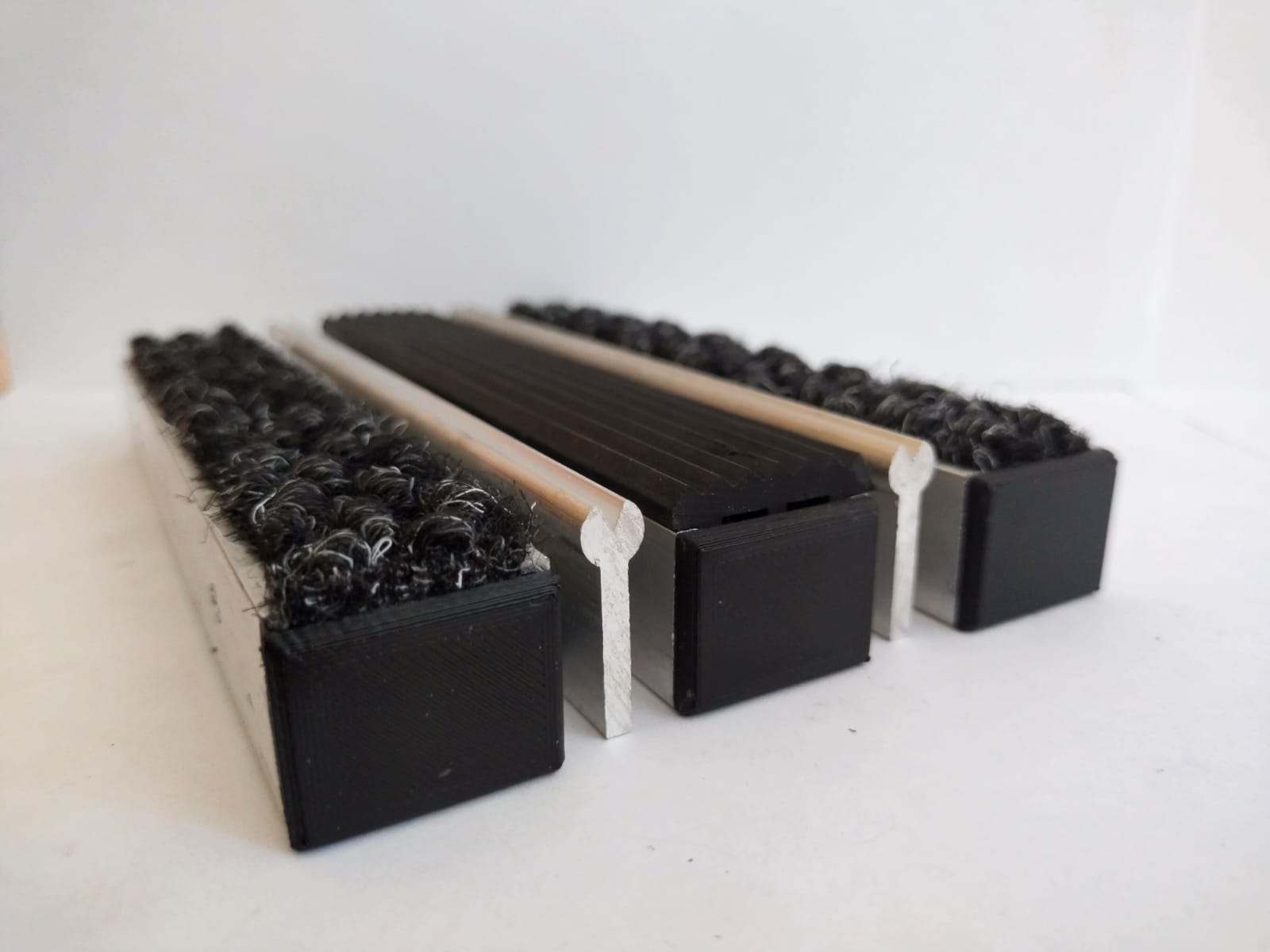 Грязезащитная алюминиевая решетка" ЕuroLux-SG ", вставка " Резина+Скребок+Ворс", Высота изделия 28 мм с шумоизоляцией, толщина профиля 1,3 мм