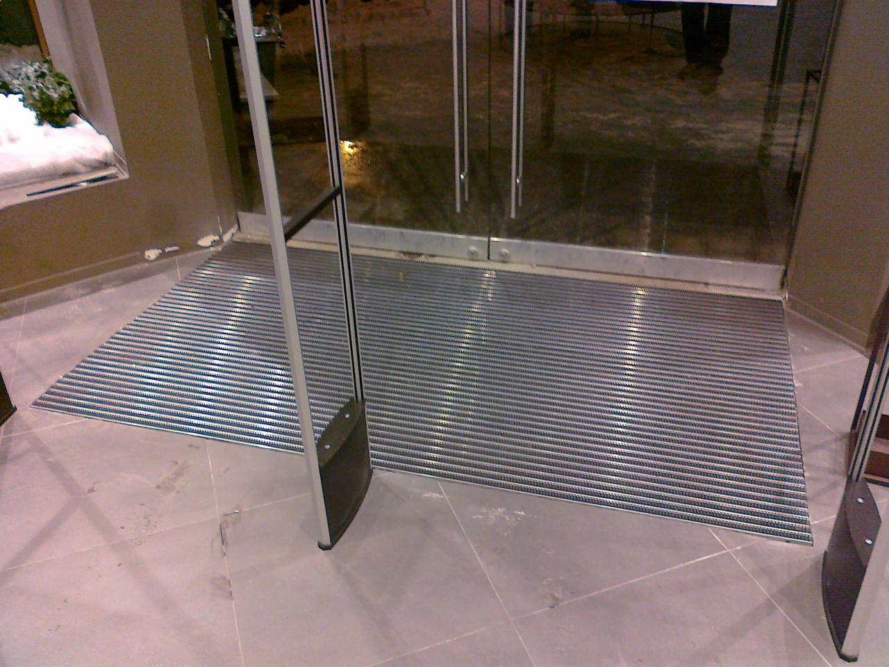 Грязезащитная алюминиевая решетка" ЕuroLux-SG ", вставка " Щётка", Высота изделия 28 мм с шумоизоляцией, толщина профиля 1,3 мм